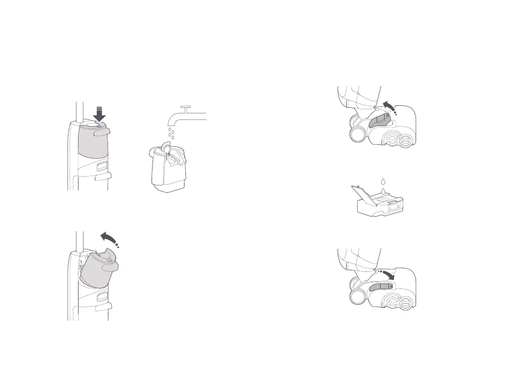 1. Naciśnij zwolnienie blokady zbiornika na czystą wodę i wyjmij zbiornik.