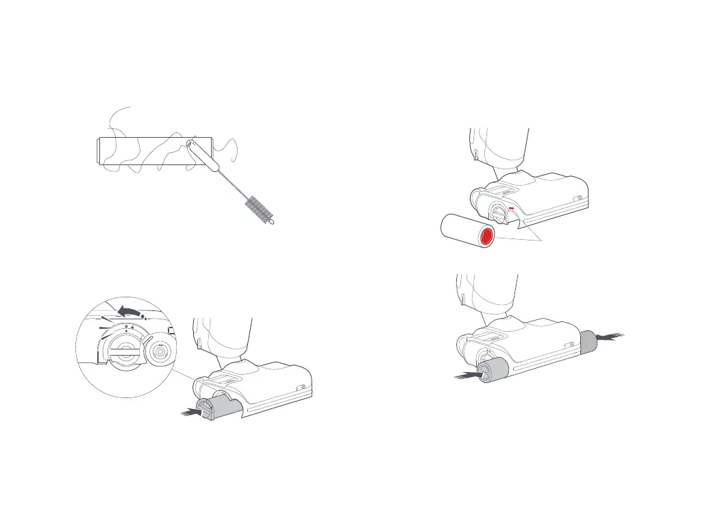 6. Włóż tylną rolkę z boku, a następnie obróć pokrywę tylnej rolki z pozycji
