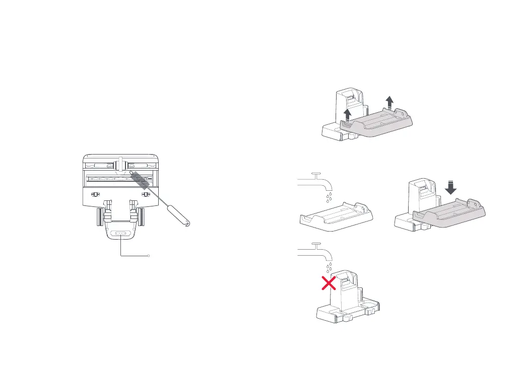 Hinweis: Nur die Ablage entfernen und abspülen. Keine anderen Teile des Ladedocks abspülen.
