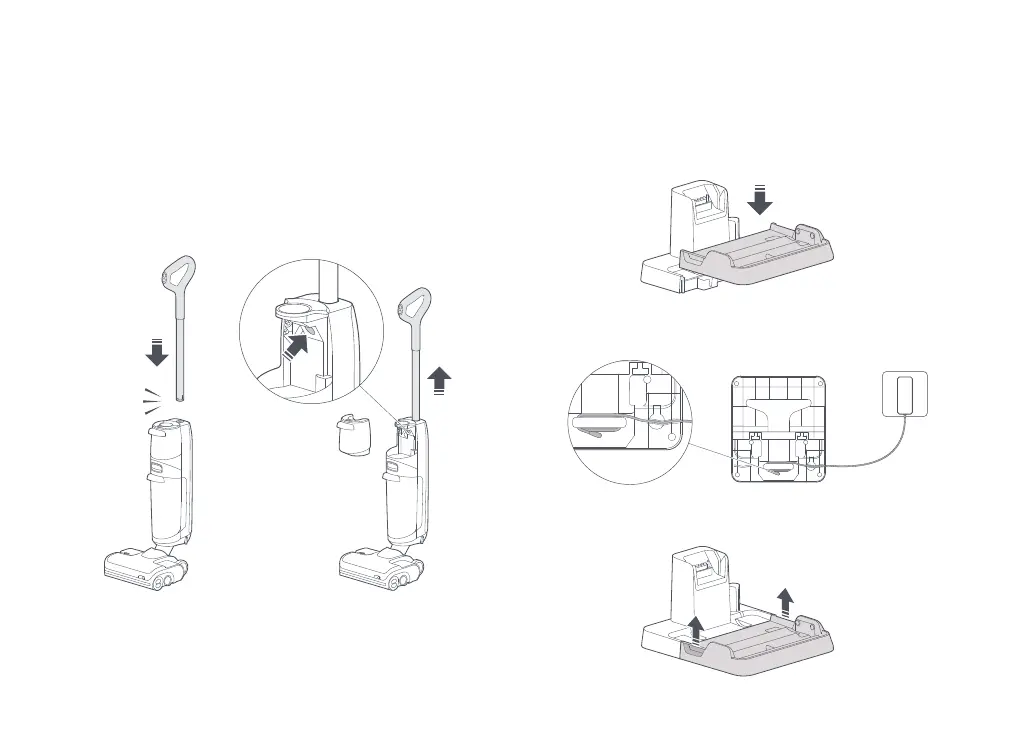 1. Inserire il manico nell’unità dell’aspirapolvere, fino a farlo scattare in
