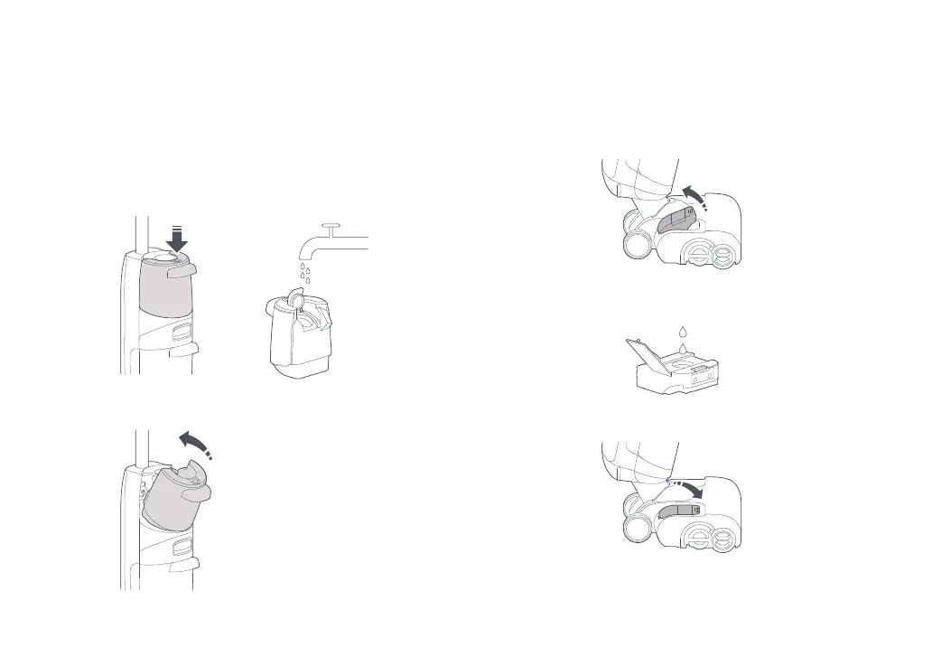 2. Aprire e riempire con acqua la vaschetta dell’acqua e richiuderla