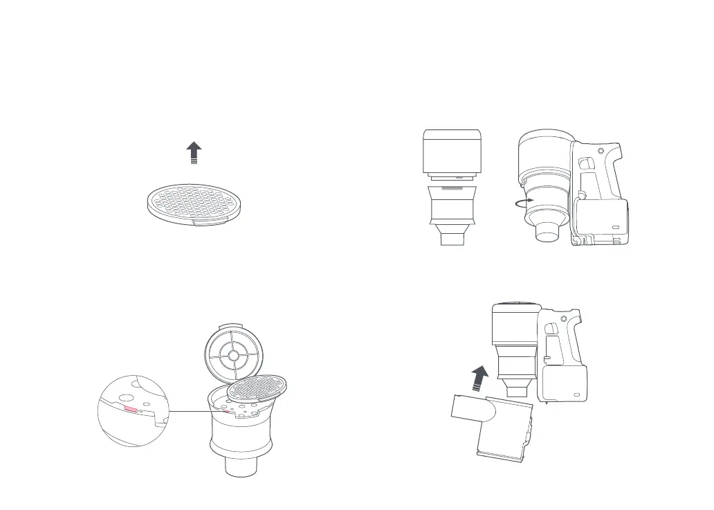 3. Cierre la cubierta del filtro delantero, alinee el conjunto ciclón