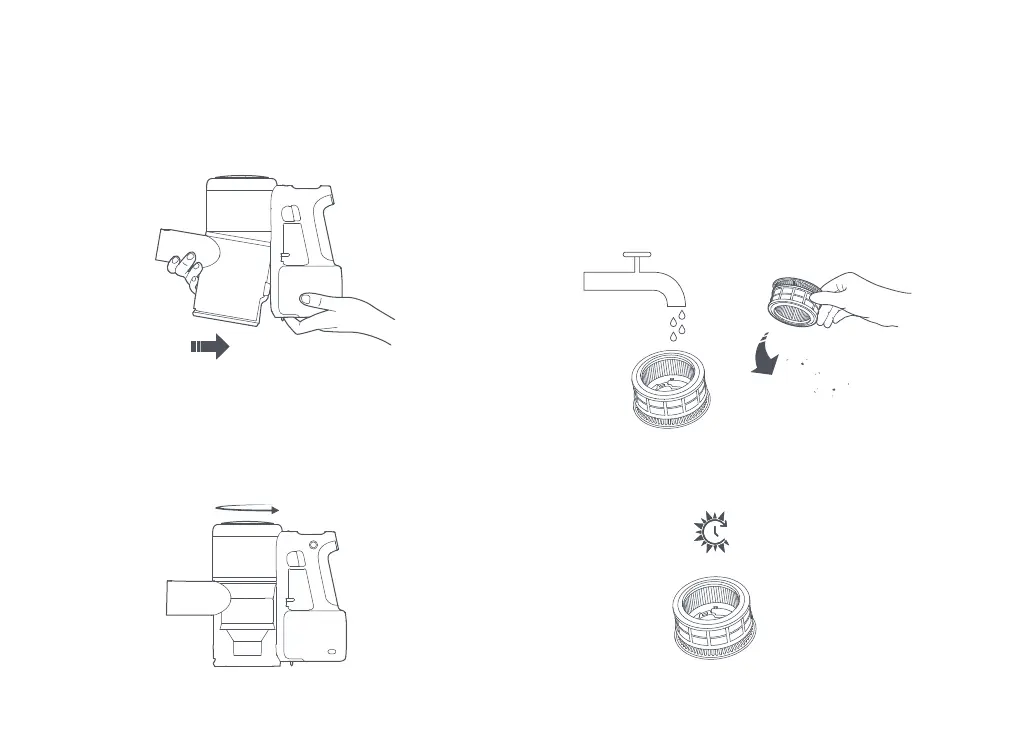 2. Enjuague el interior del filtro trasero con agua; gírelo mientras
