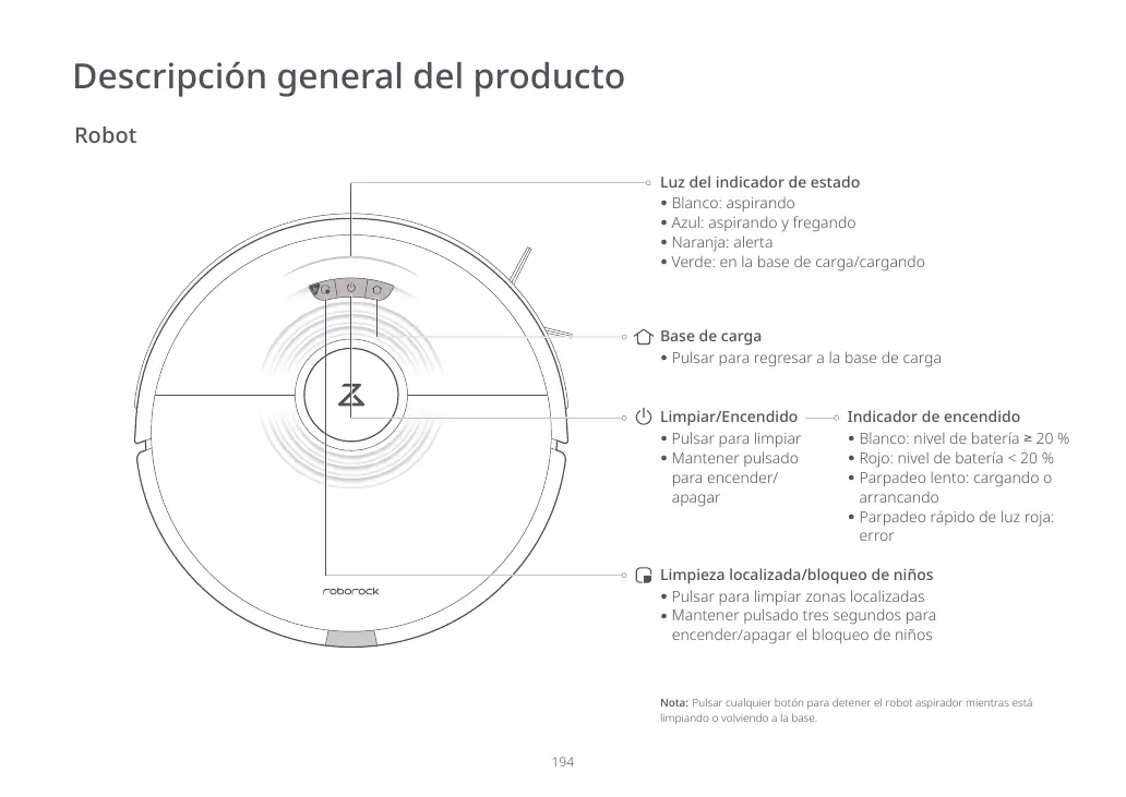 Nota: 3XOVDUFXDOTXLHUERWµQSDUDGHWHQHUHOURERWDVSLUDGRUPLHQWUDVHVW£