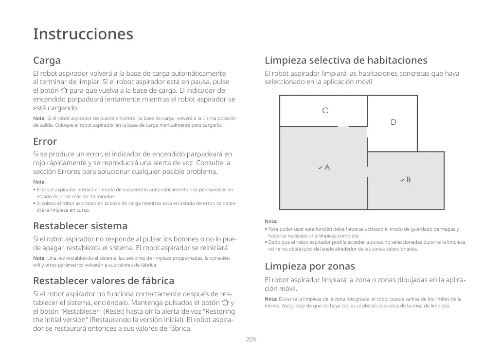 Nota: 'XUDQWHODOLPSLH]DGHOD]RQDGHVLJQDGDHOURERWSXHGHVDOLUVHGHORVO¯PLWHVGHOD