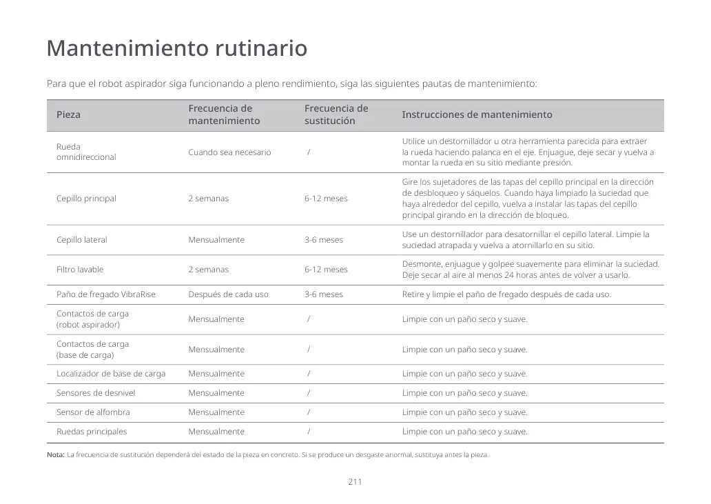 Instrucciones de mantenimiento