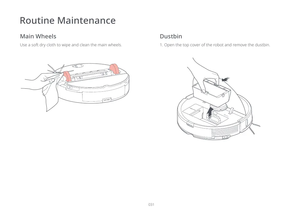 2SHQWKHWRSFRYHURIWKHURERWDQGUHPRYHWKHGXVWELQ