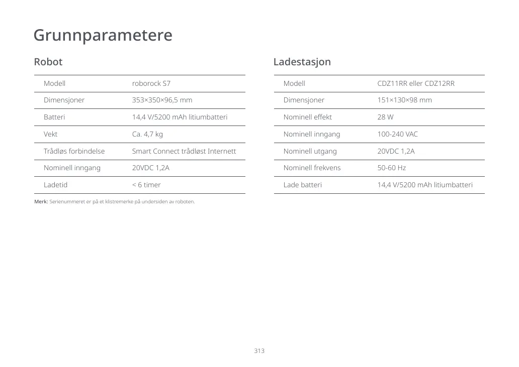 Merk: 6HULHQXPPHUHWHUS§HWNOLVWUHPHUNHS§XQGHUVLGHQDYURERWHQ