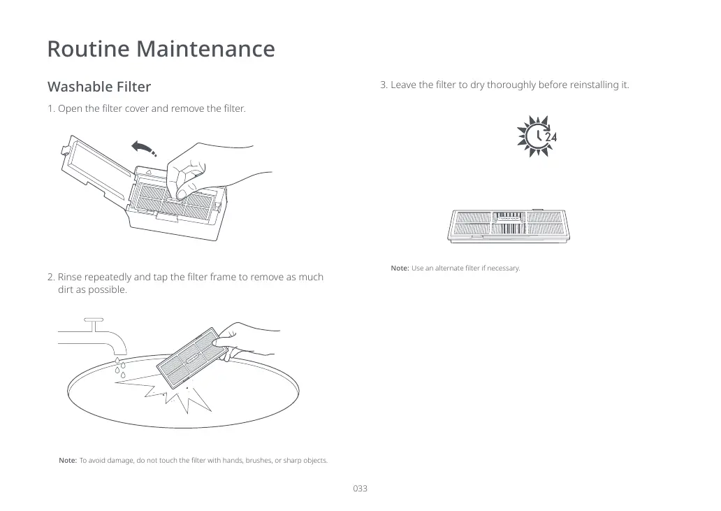 Note: 7RDYRLGGDPDJHGRQRWWRXFKWKHࢉOWHUZLWKKDQGVEUXVKHVRUVKDUSREMHFWV