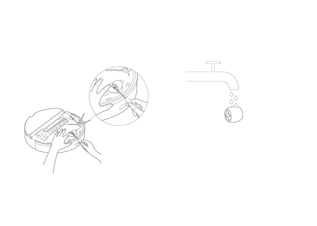 2. Spülen Sie das Rad und die Achse ab, um Haare und Schmutz