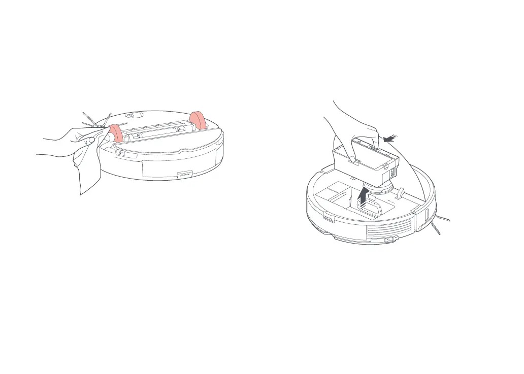 1. Aprire il coperchio superiore del robot e rimuovere il cestino