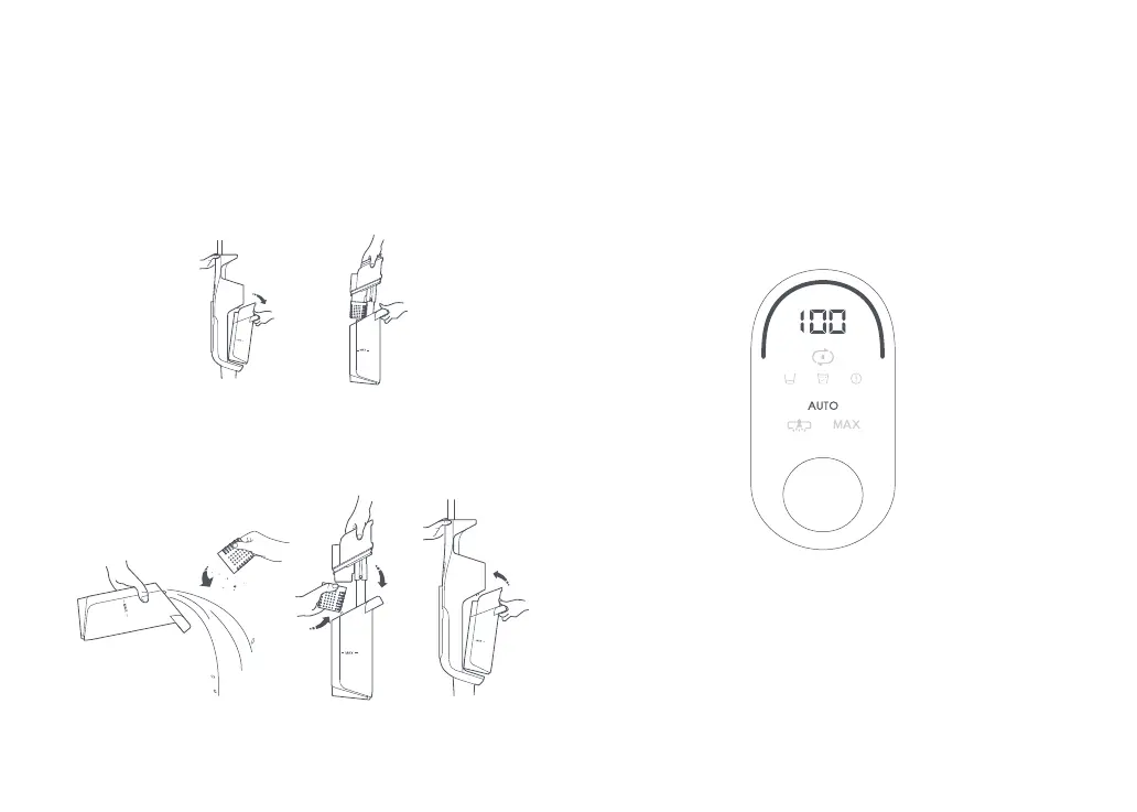 1. Appuyez sur le loquet de retrait du réservoir d'eau sale et retirez