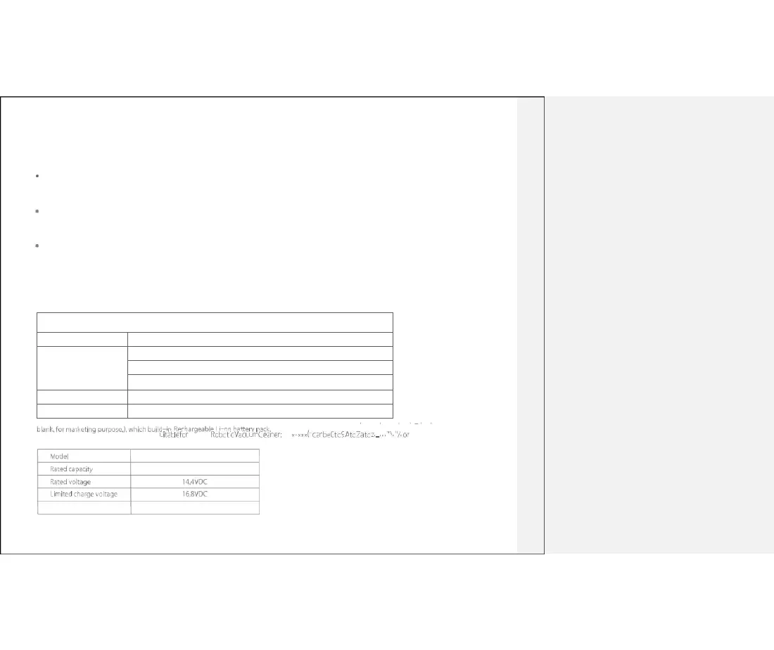 Table of Faults of Robotic Vacuum Cleaner