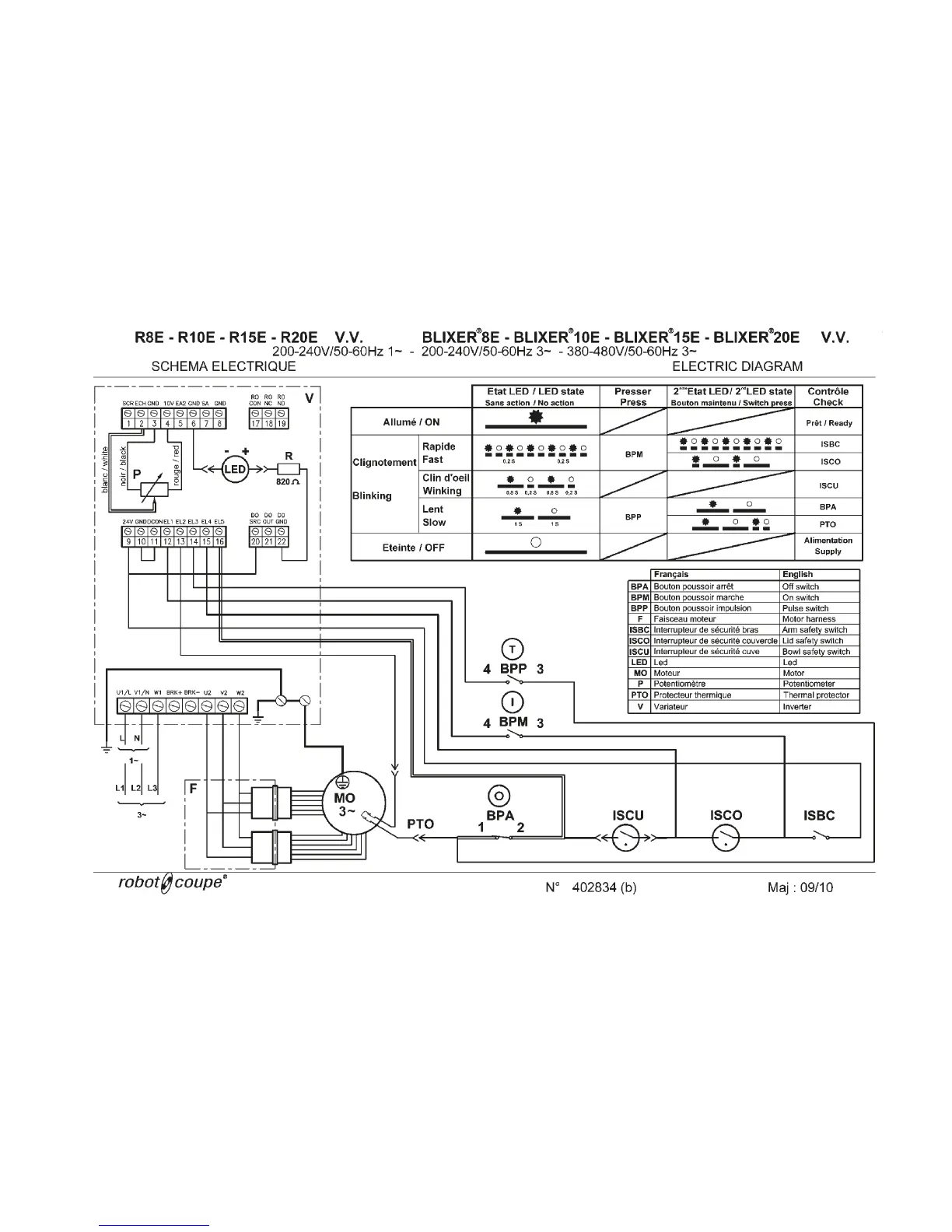 Robot Coupe Blixer 8 - Diagnostic LED Indicators and Controls; Interpreting LED States and Diagnostic Codes