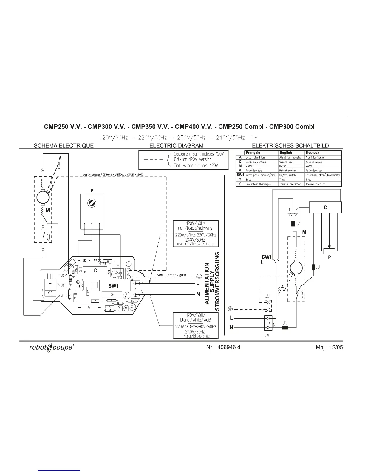 Robot Coupe CMP 250 V.V. - ELECTRICAL DIAGRAM; SCHEMATIC COMPONENTS AND LEGEND