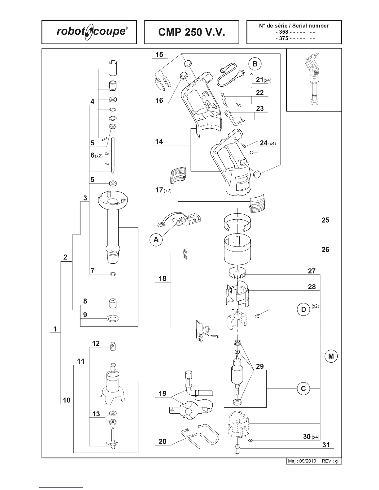 Robot Coupe CMP 350 V.V. - Parts Identification: CMP 250 V.V.; Exploded View Diagram; Component Parts List