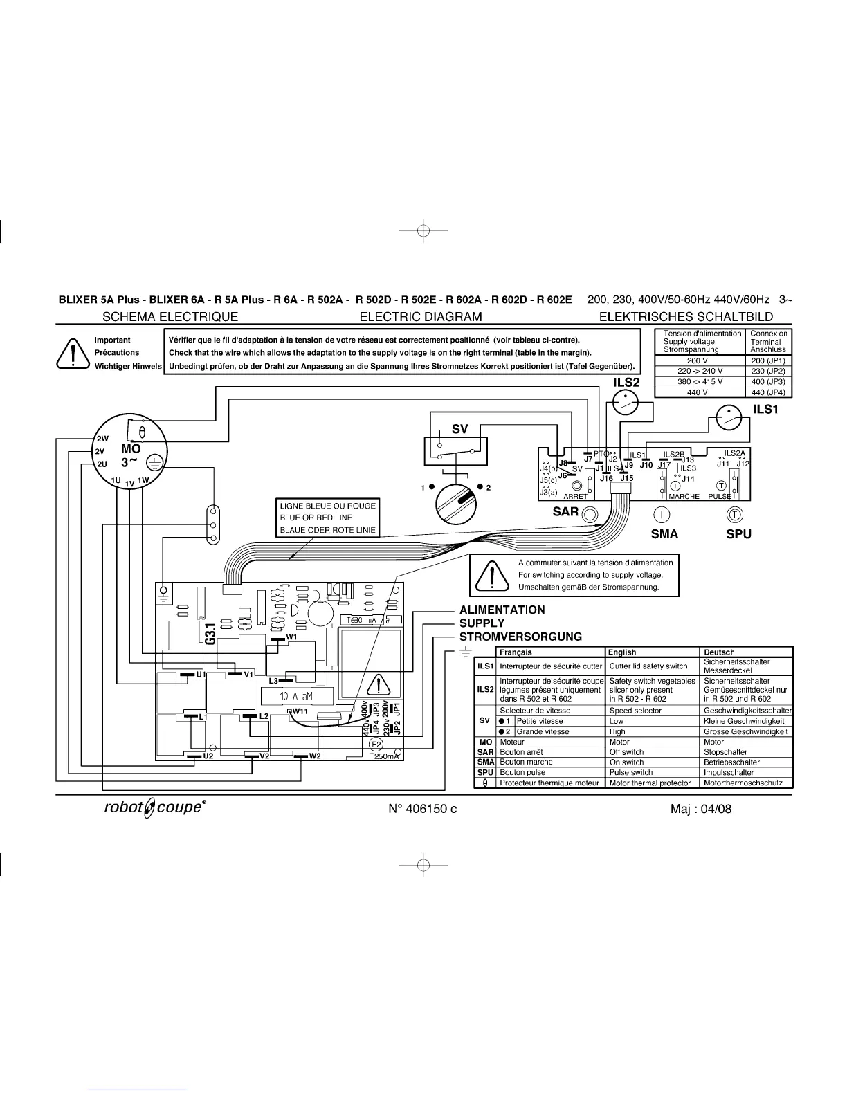 Robot Coupe R 5 Plus - Electric Diagram for Blixer;R 5;R 6 Series (200-400 V)
