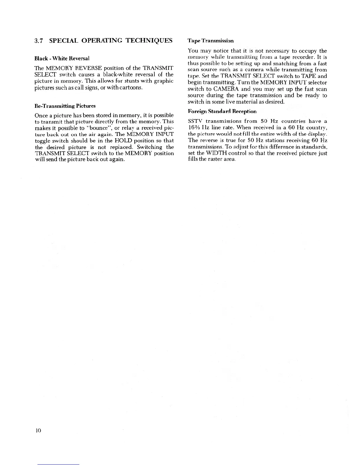 Robot 400 - Special Operating Techniques; Black White Reversal; Re-Transmitting Pictures; Tape Transmission
