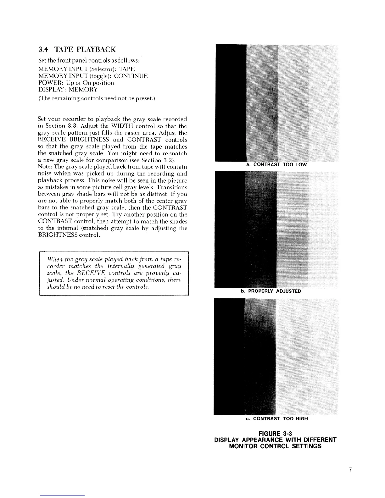 Robot 400 - Tape Playback; Contrast too Low; Properly Adjusted; Contrast too High