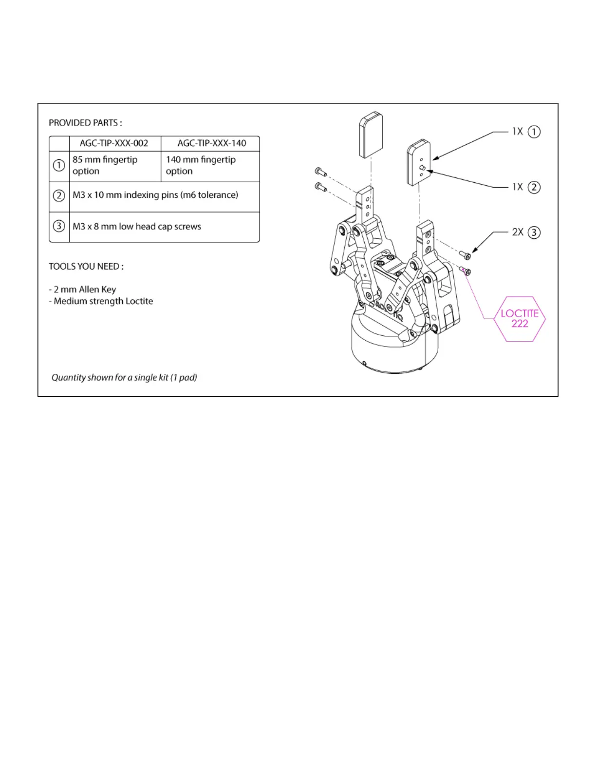 Figure 3.4.2 : Installing the fingertip (pads) onto the Gripper