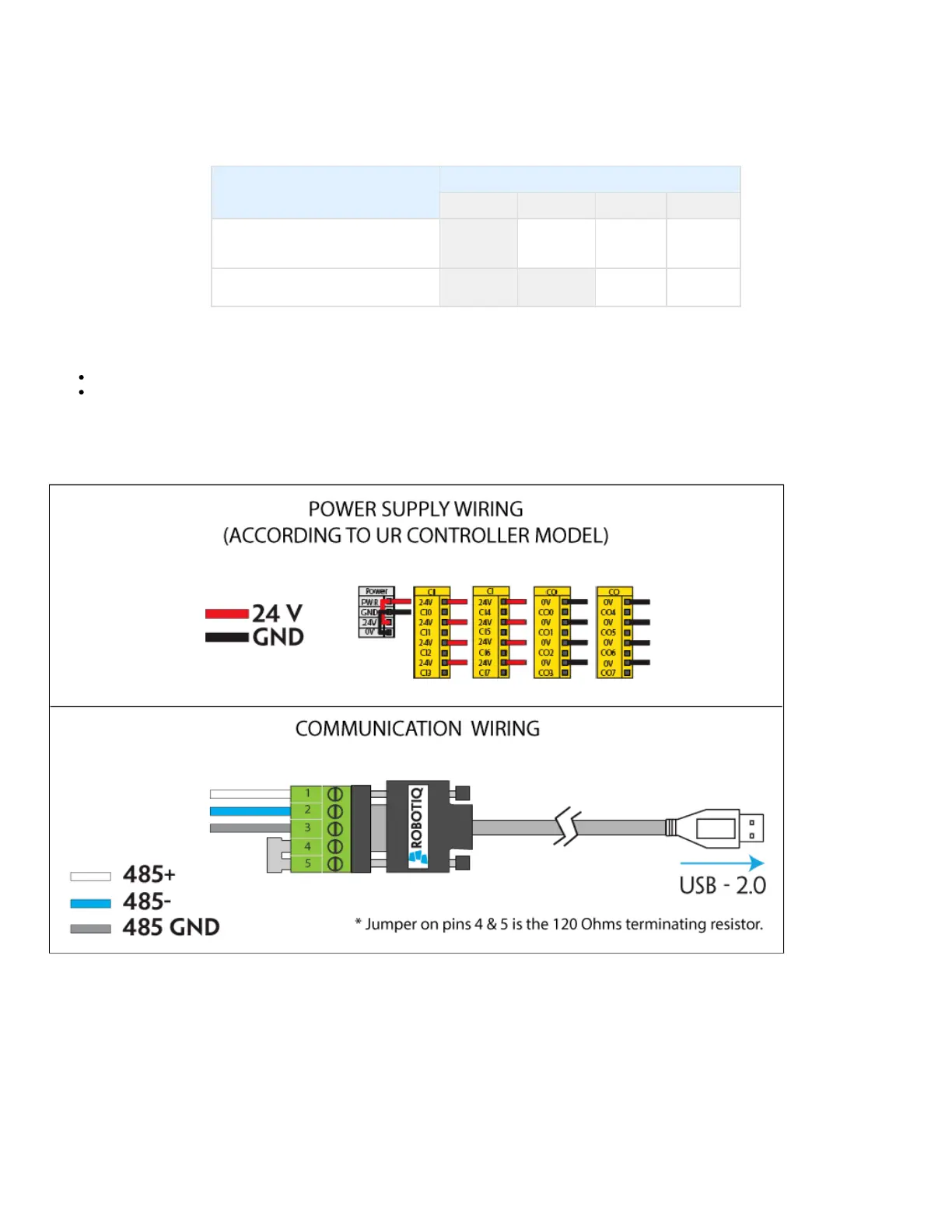 Prior to any software installation on Universal Robots, connect the white, blue and bare wires to the Robotiq RS-485 signal converter