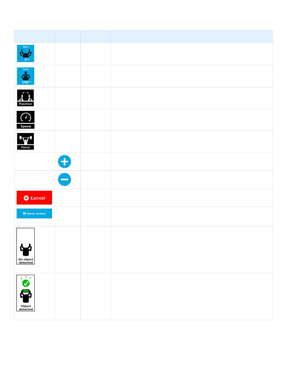Save action Saves settings into the selected Gripper node and brings back to the Gripper node command screen.