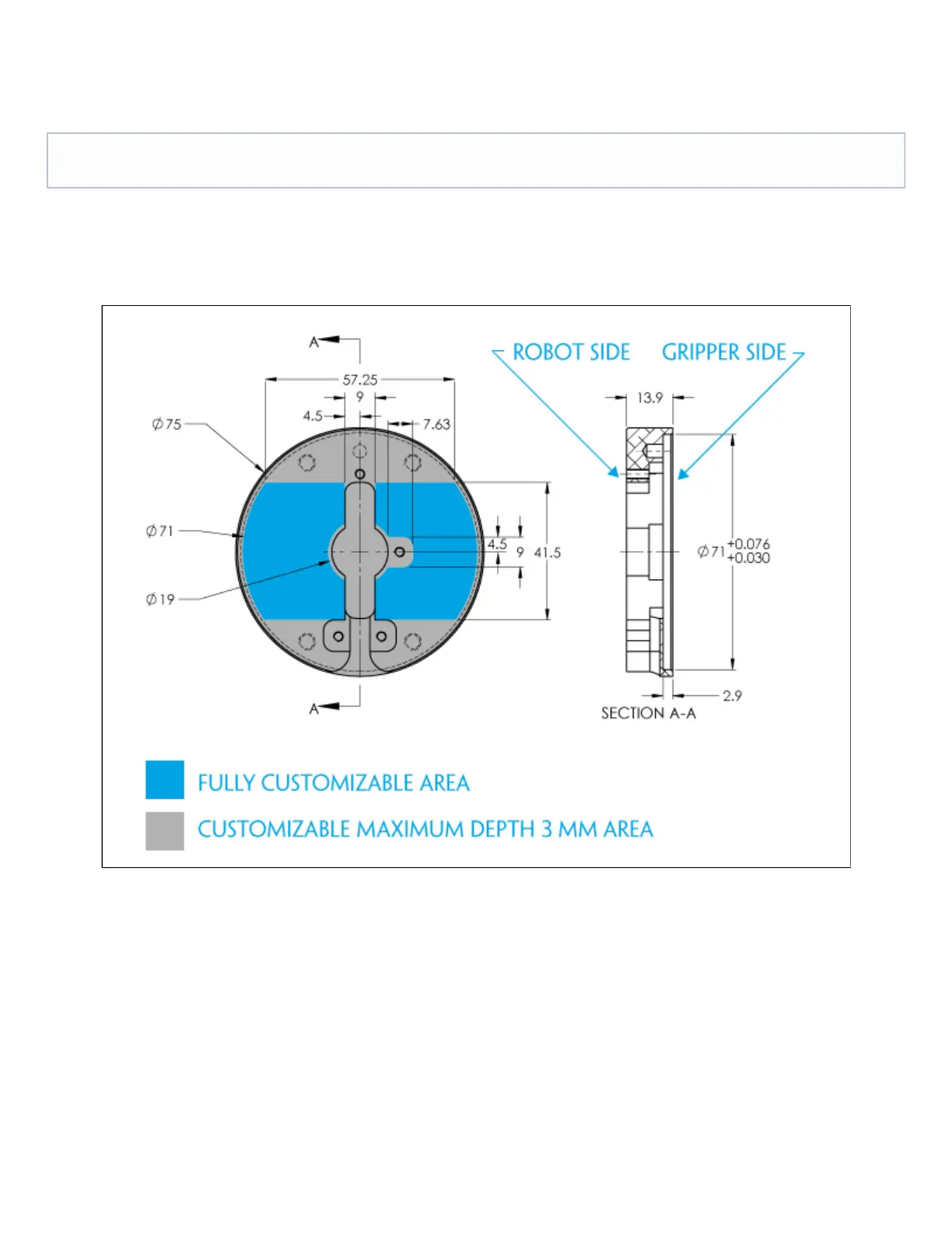 Figure 6.1.1.1 : Blank coupling AGC-CPL-061-002 workable area dimensions.