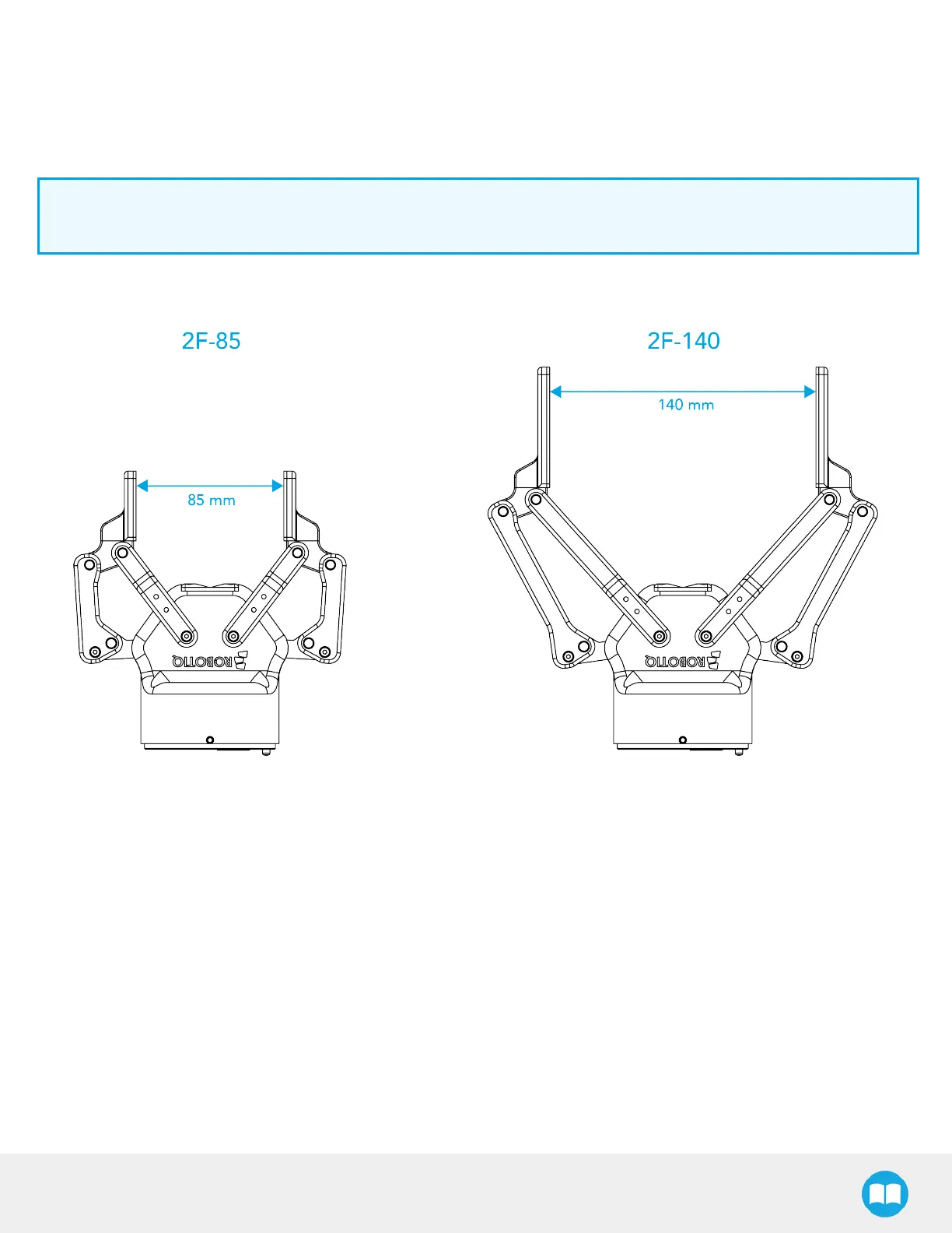 The 2-Finger Gripper has two configurationseither 85 mm opening (2-Finger 85) or 140 mm opening (2-Finger 140). The chassis