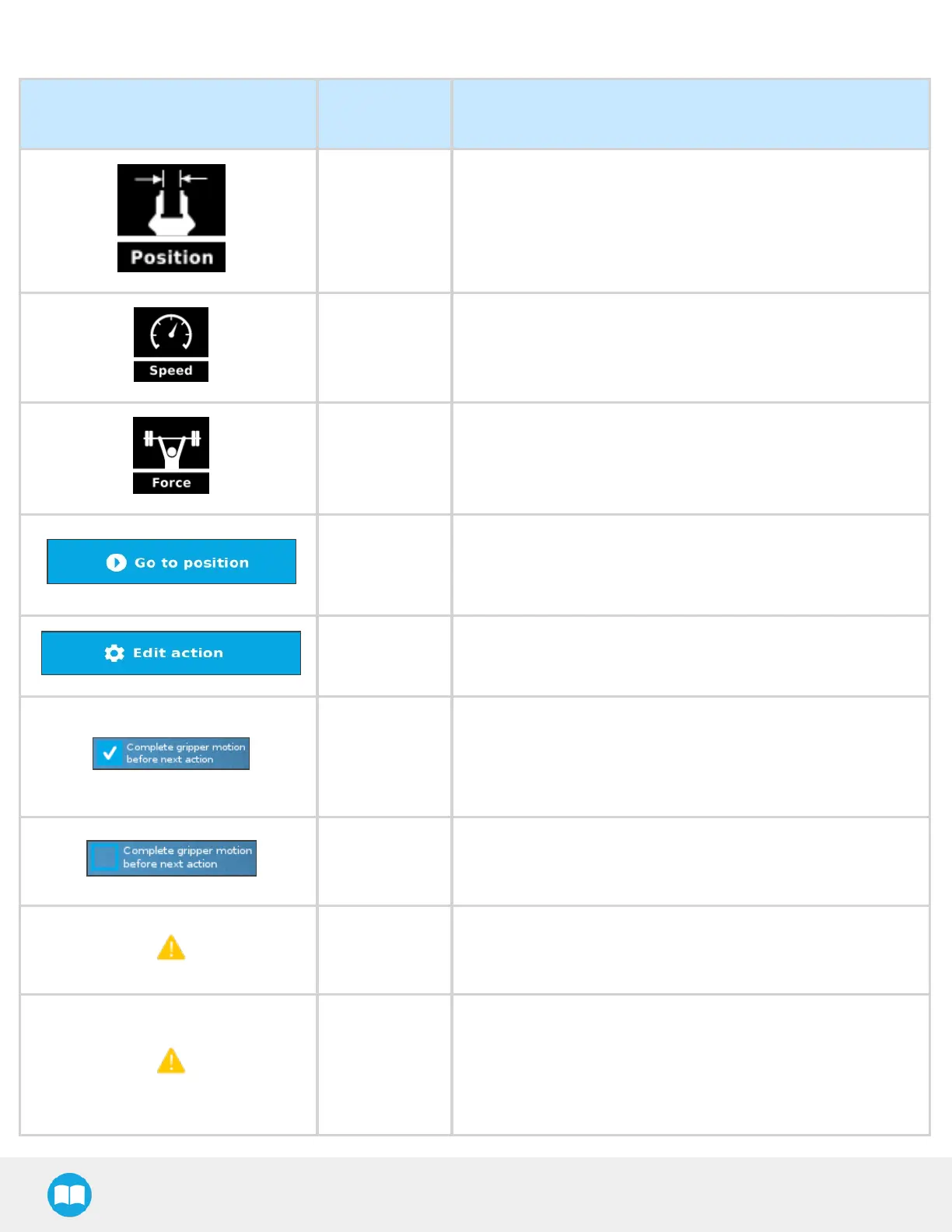 Note: Thisbutton isdisabled (grey)when the gripper isalready at