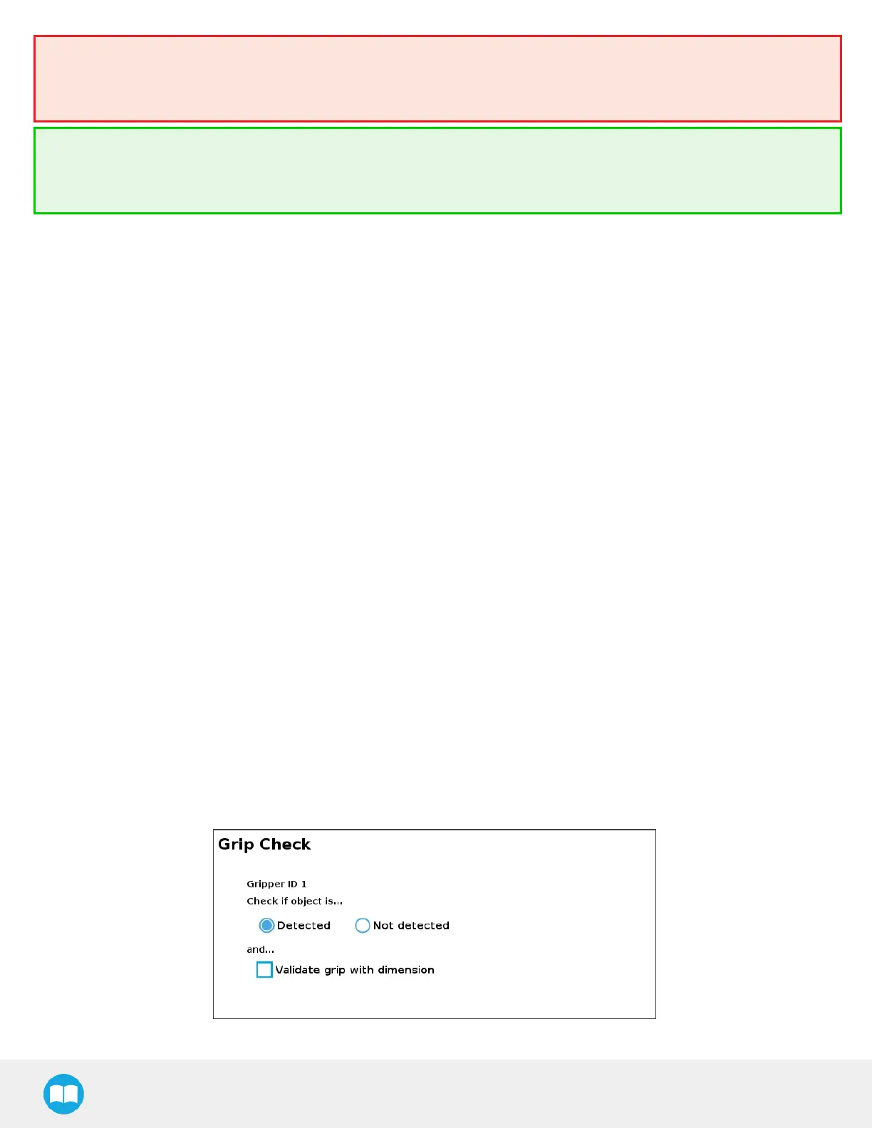 The Grip Check node is pre-packaged asan If statement that prompts the user to select between if the object isdetected and if