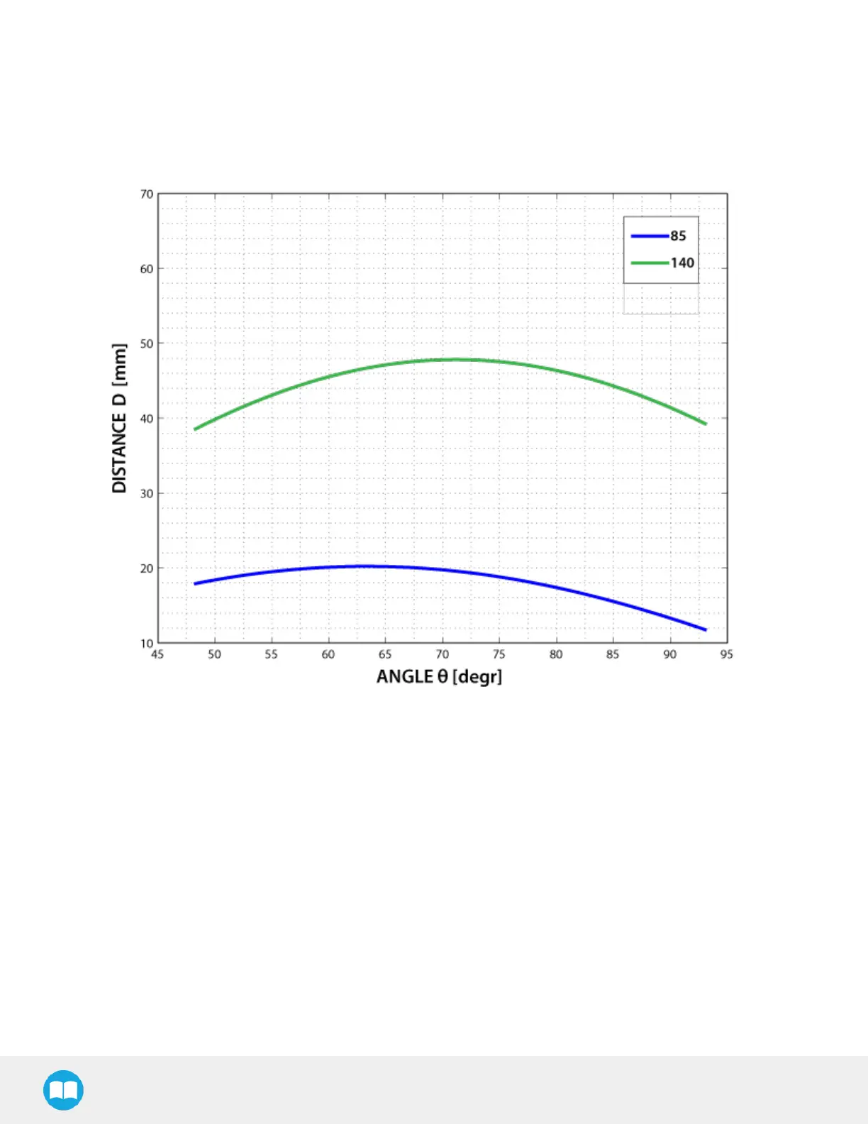 Fig. 5-12: Position of the Gripper equilibrium line according to the opening angle for 2-Finger 85 and 2-Finger 140 options.