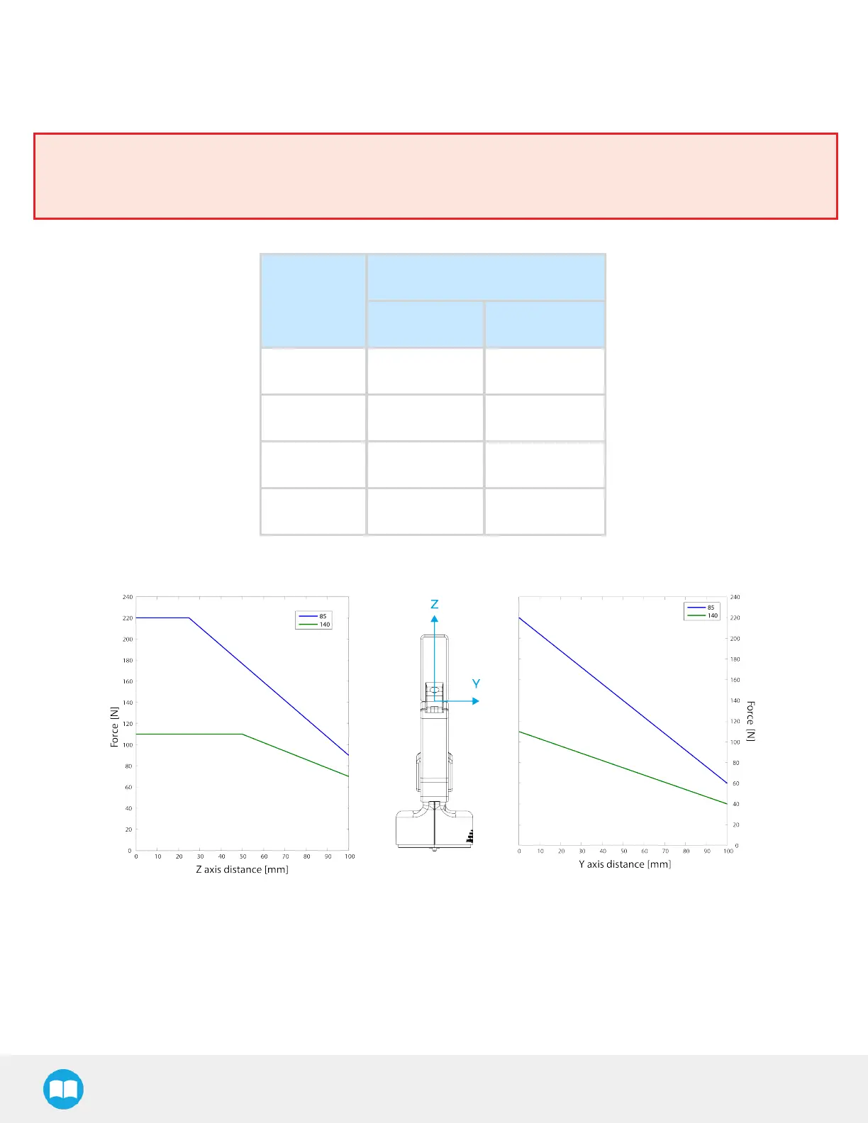Fig. 5-15: Maximum recommended grip force in the Yand Z axis for the 2-Finger 85 and 2-Finger 140.