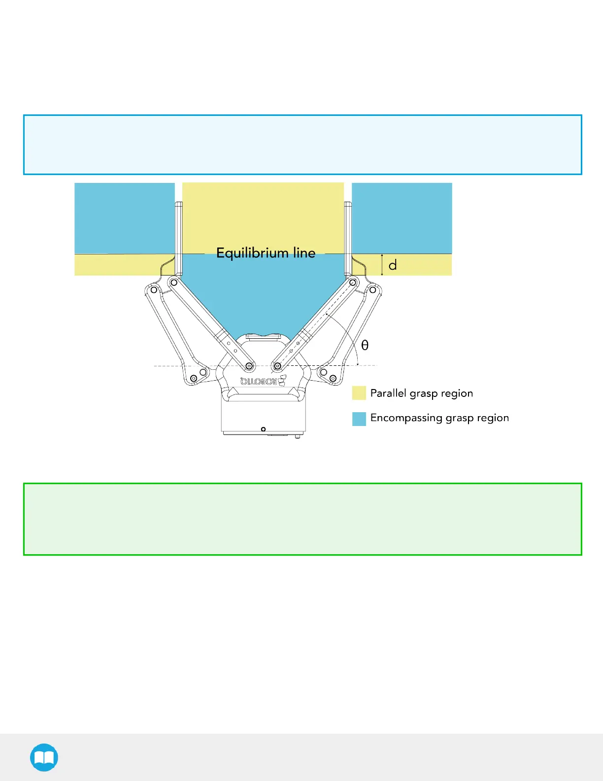 close with a parallel motion. The figure below showsthe encompassing grasp region, the equilibrium line, and the parallel grasp