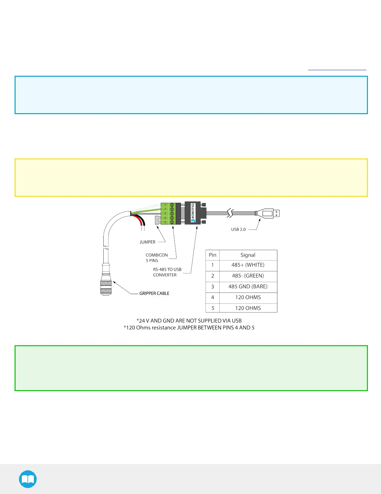 ADTUSB-RS485 pinout figure below)to plug into a PC with the Robotiq User Interface installed.