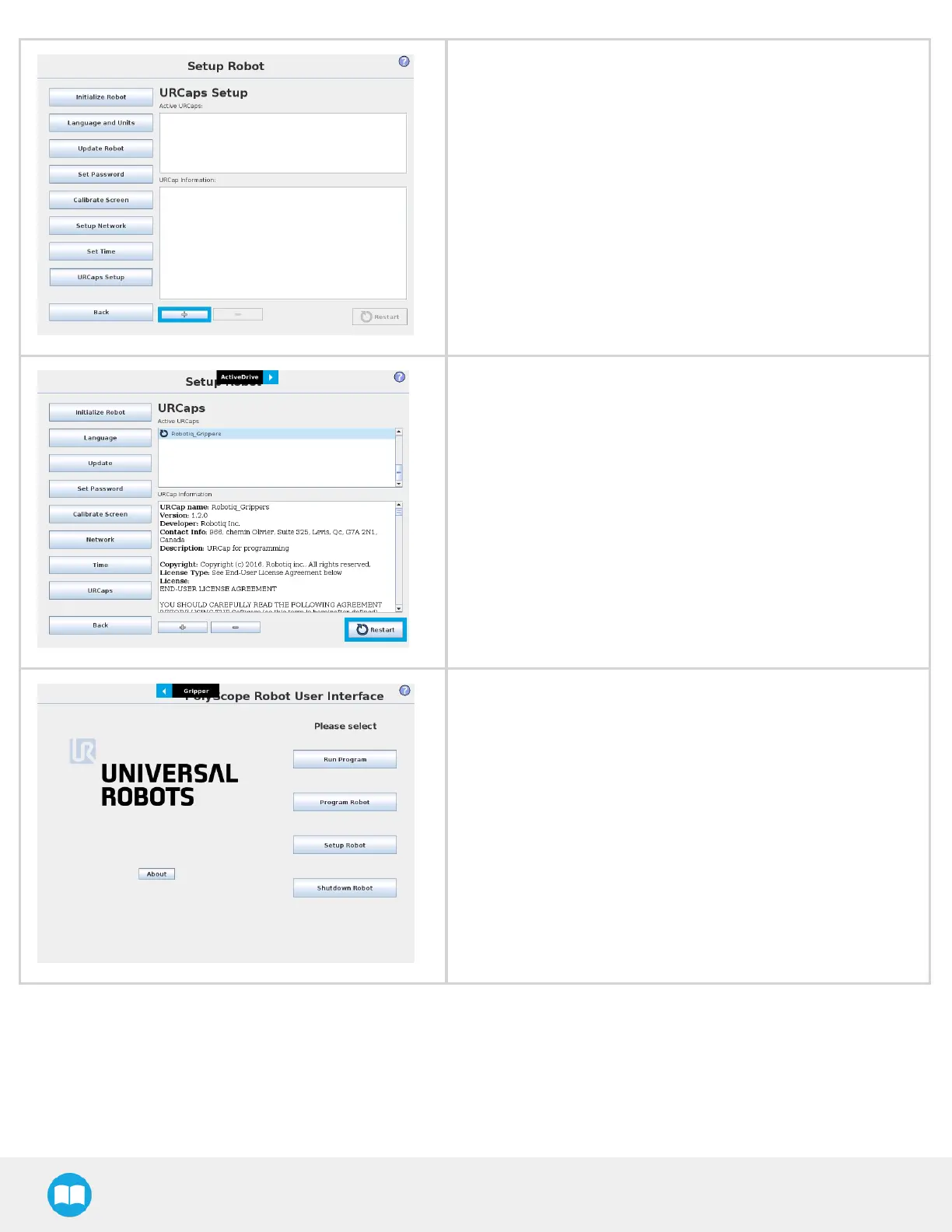 When PolyScope reopens, the Gripper Toolbar will appear on