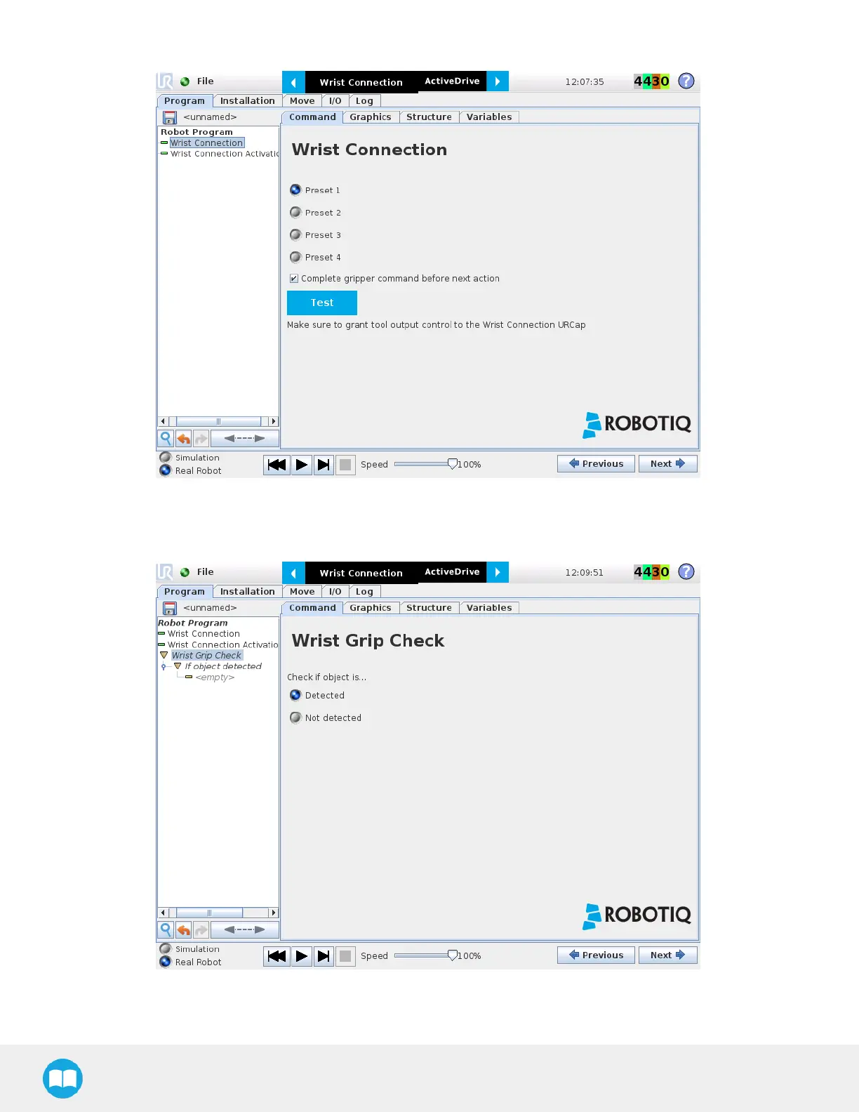 The Wrist Grip Check node ispre-packaged as an If statement that promptsthe user to select between if the object isdetected