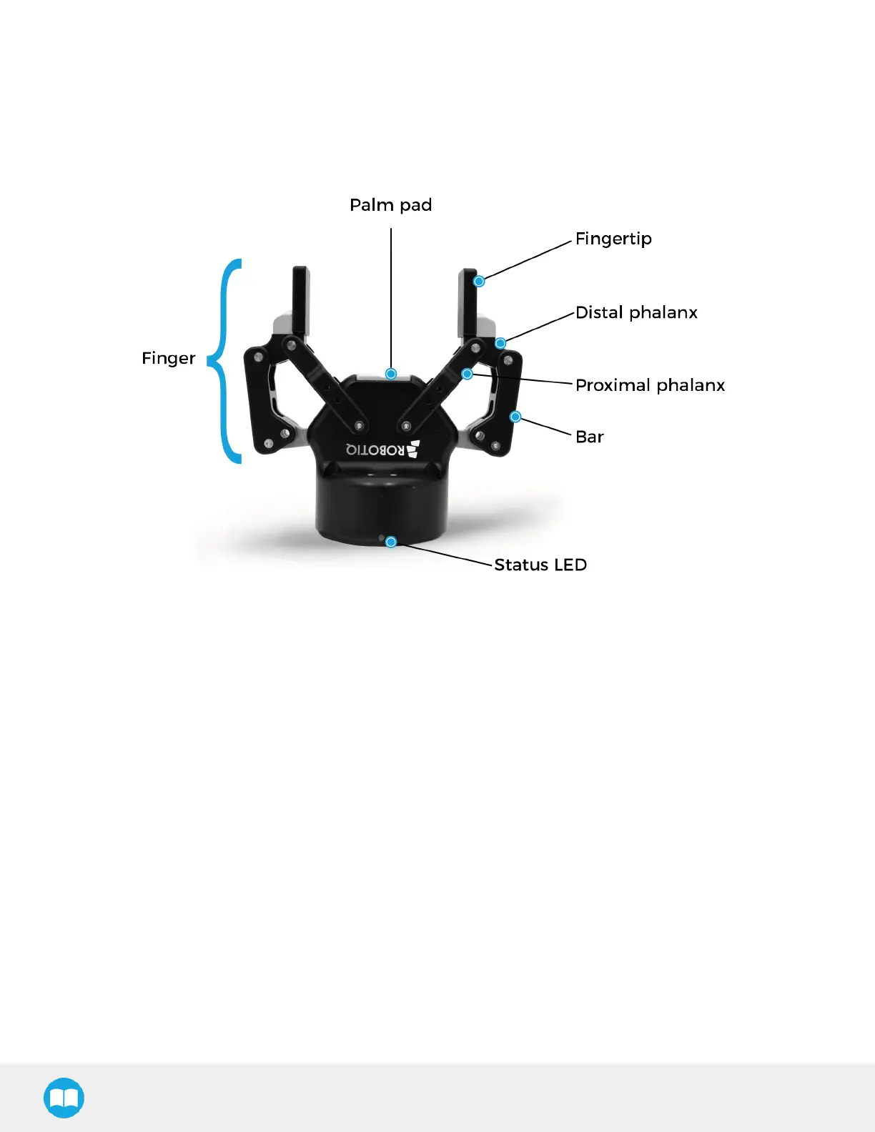 The 2-Finger Gripper has two articulated fingers that each have two joints (two phalanxesper finger), as shown in the figure below.