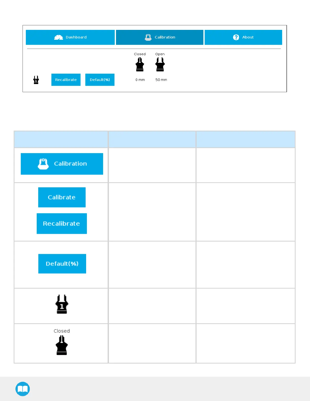 Following their respective calibration, the gripperswill display their actual stroke, from the fully closed to the fully open position.