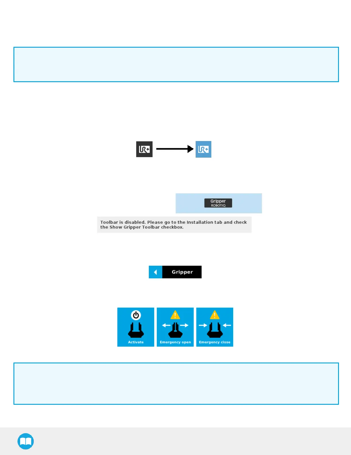 If the user hasomitted to tick the Show Gripper Toolbar box in the Gripper Dashboard, tapping the UR+ button will display this