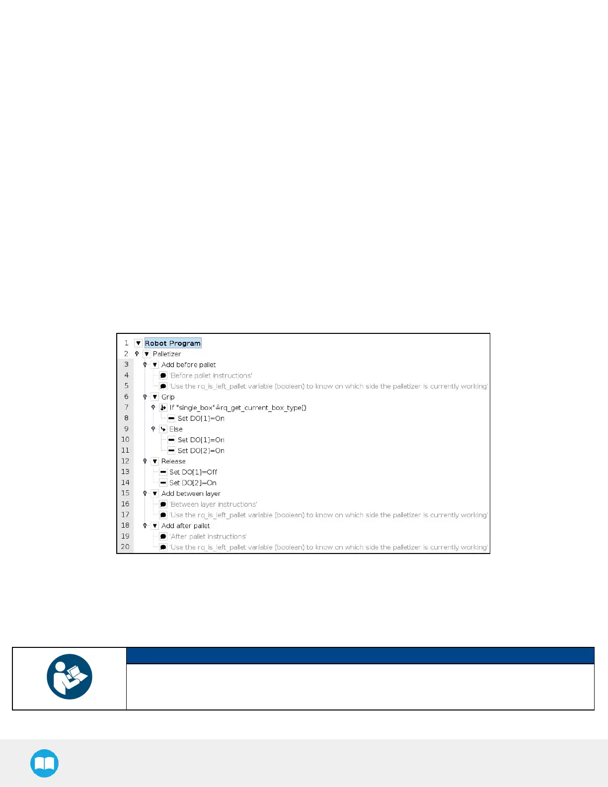 In its most basic form, the Palletizer node allows the user to insert “before pallet” instructions, grip and release actions, “between