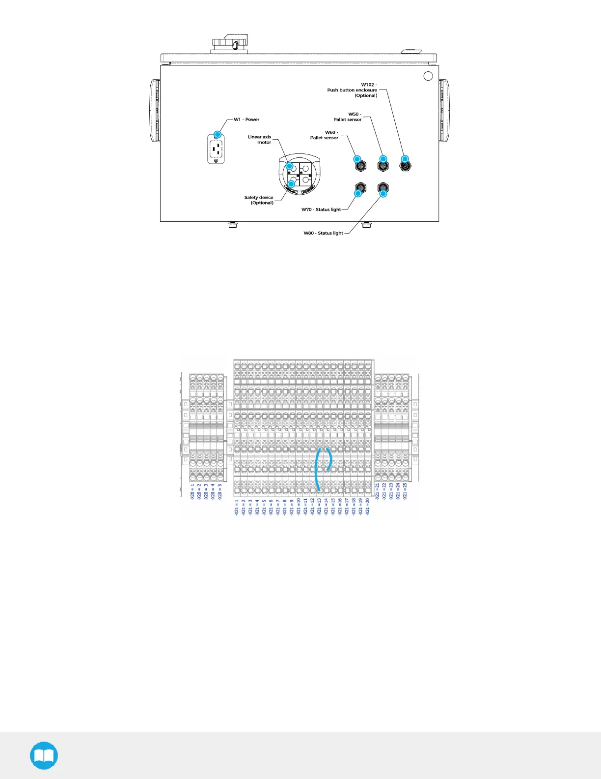 3. On terminal bank -X21, locate the two (2) jumpers that correspond to the safety feature to implement.