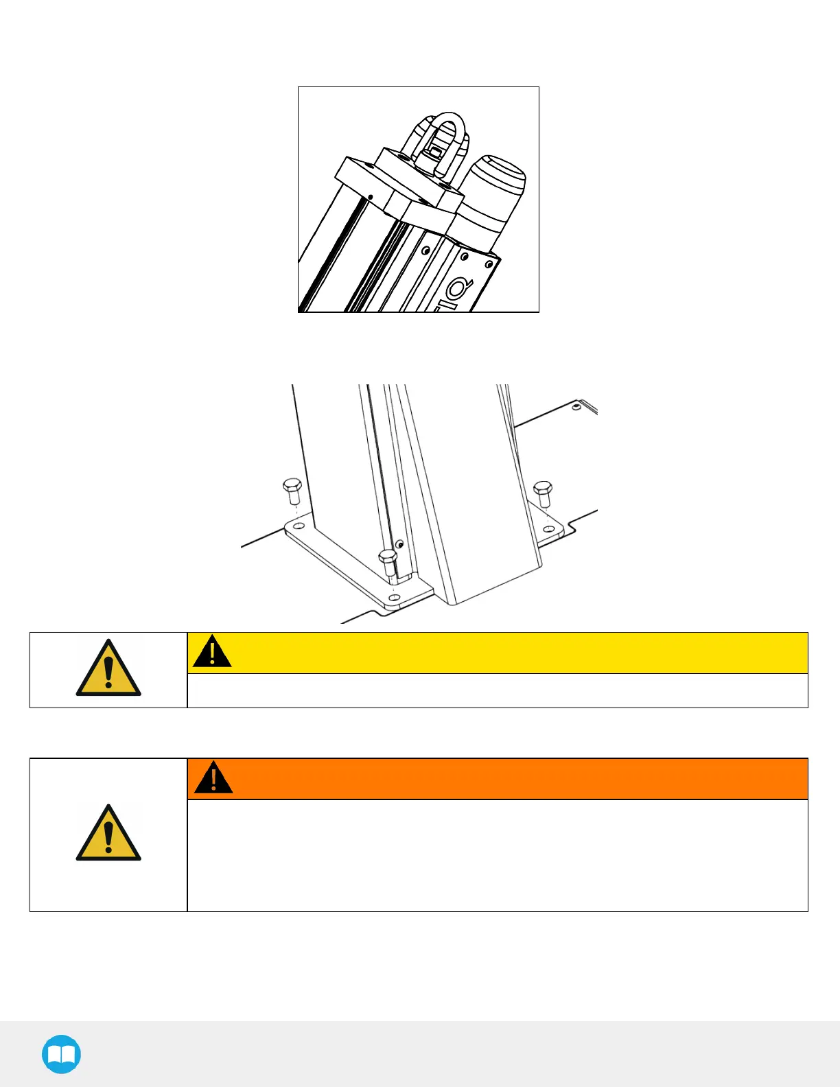 14. Lift and place the column onto the base. Robotiq recommends attaching the hook at the top of the column to a lifting