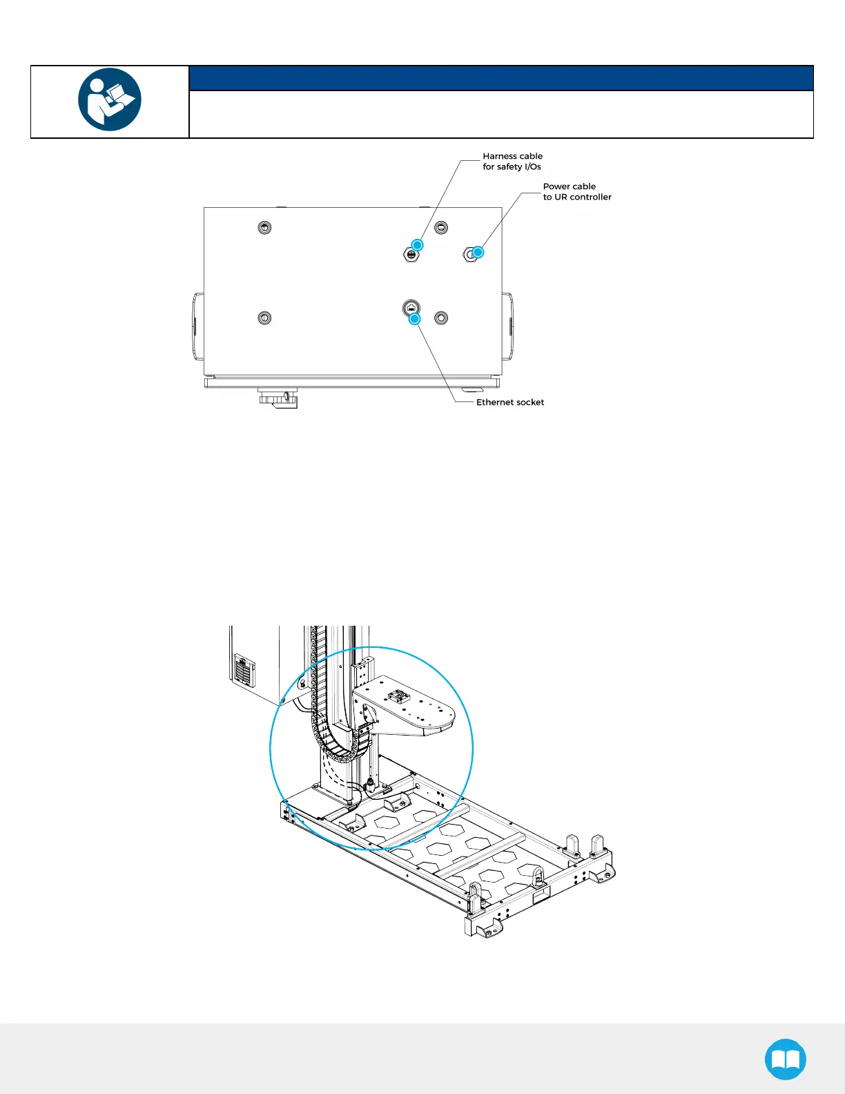 2. Connect the pallet sensor cables to the linear axis controller. Follow cable labeling and connector identification.