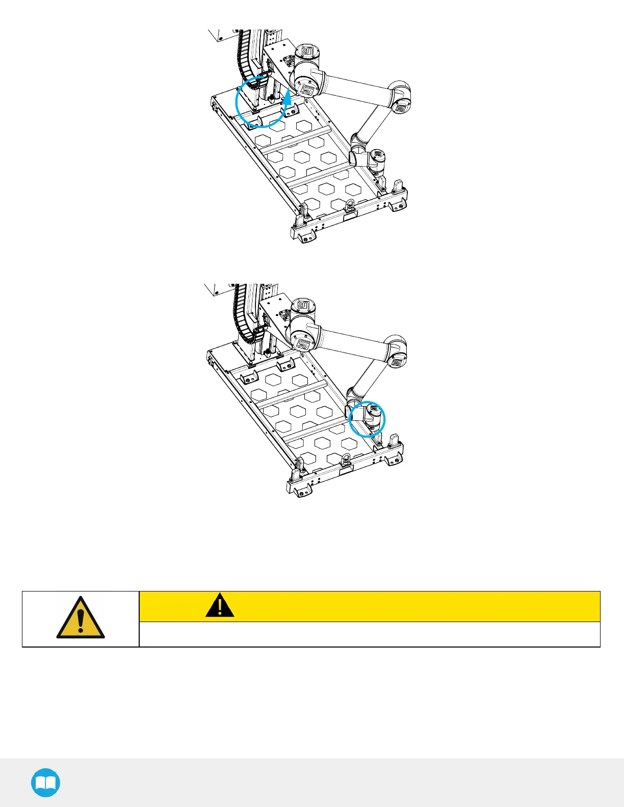 7. Rotate the column clockwise so that the side of the robot wrist touches the side of the base, as depicted in the figure below.