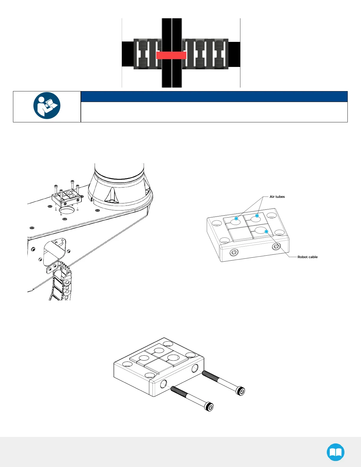 Remove the cable entry frame from the robot base plate by unscrewing the four screws on top. Note the orientation of