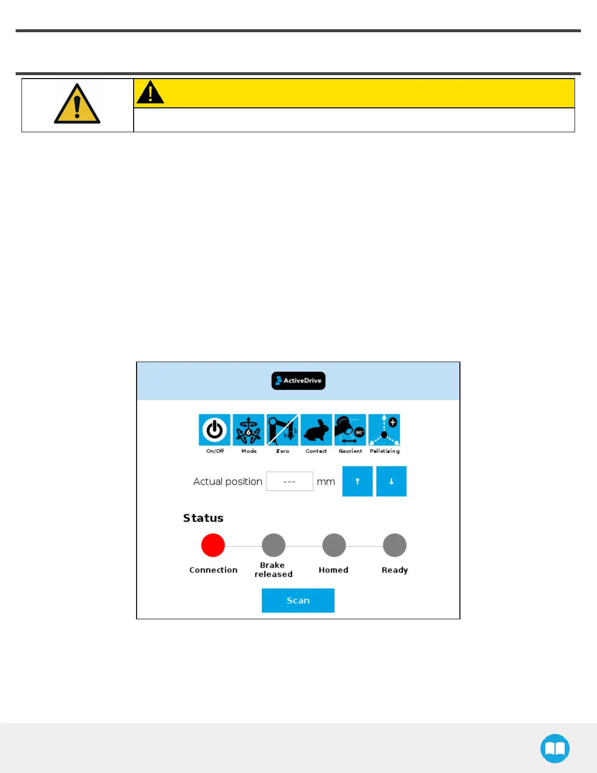 5. Activate and test the linear axis: Tap the UR+ icon → ActiveDrive toolbar→ Palletizing→ Scan (you may have to press the