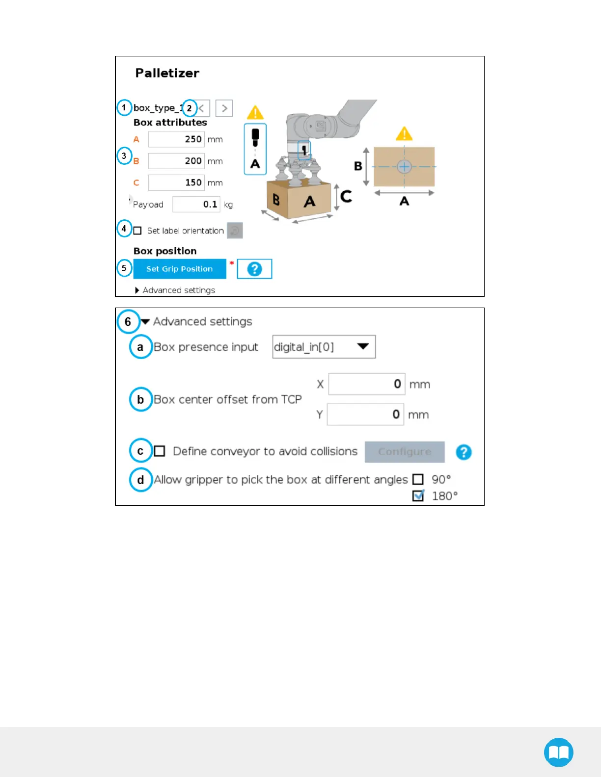 Fig. 5-12: Box Menu of a Palletizer Node