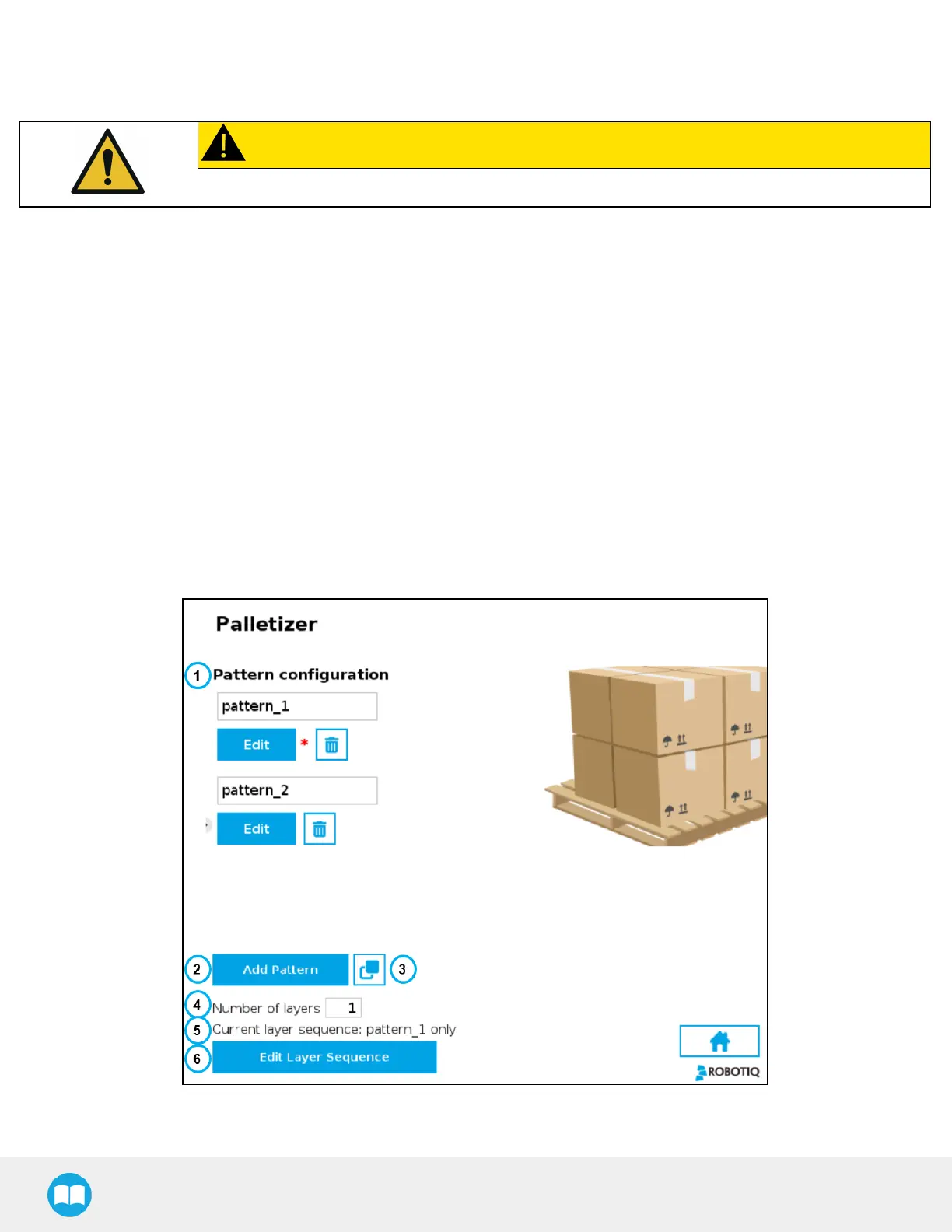 If the multi-recipe feature has been enabled in the Settings menu, the home view of the Palletizer node displays the list of recipes
