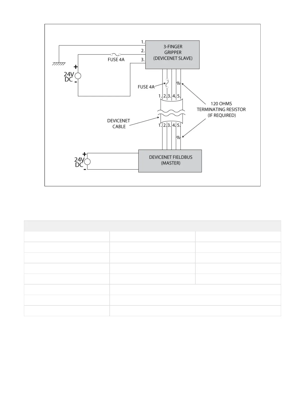 Figure 3.5.2.2 : Power connection diagram for the using DeviceNet Fieldbus.3-Finger Gripper