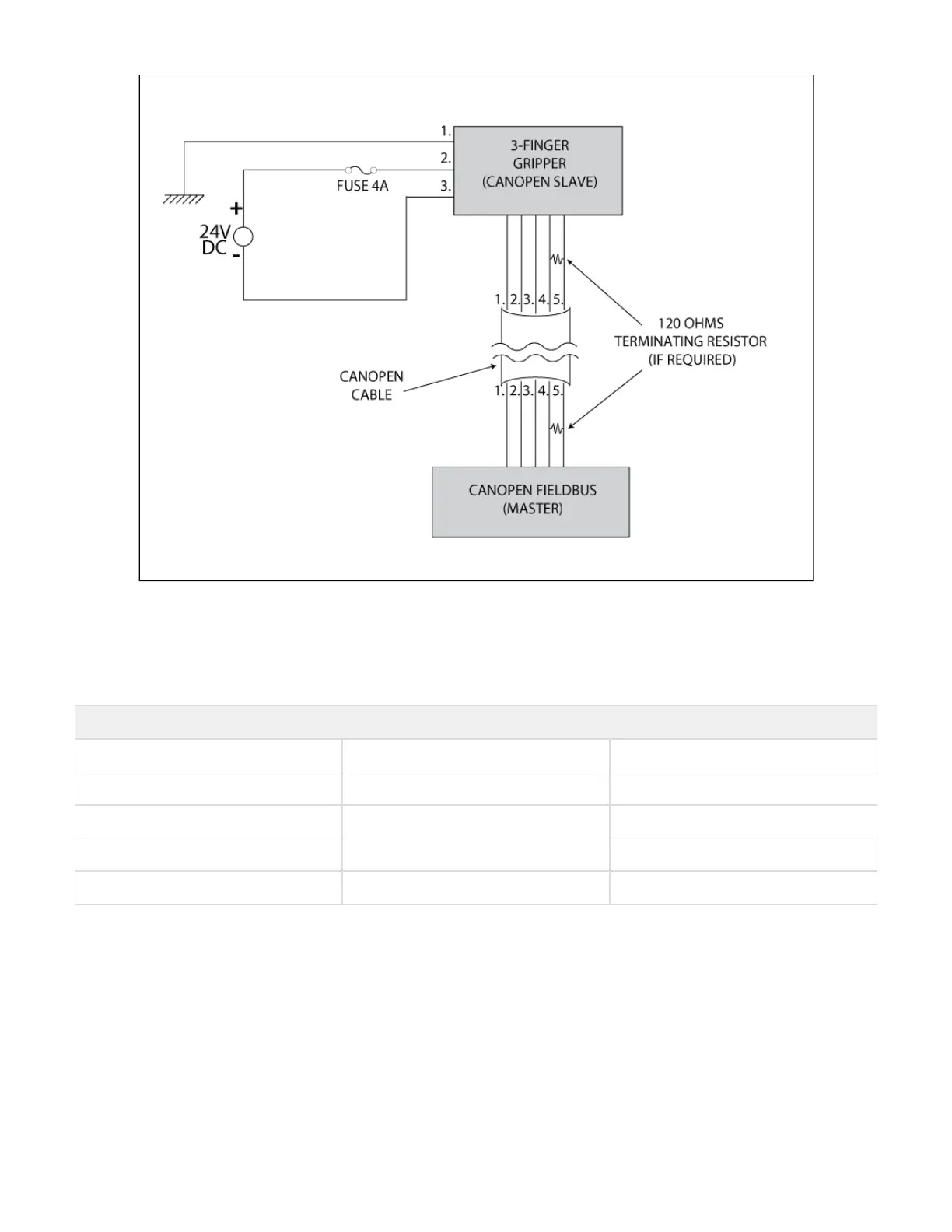 Figure 3.5.2.4 : Power connection diagram of the 3-Finger Gripper using CANopen Fieldbus.